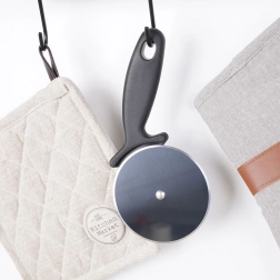 Tento odolný nôž na pizzu s otočným kolieskom z nehrdzavejúcej ocele krája pizzu, koláče aj placky na rovnomerné porcie bez trhania. Ergonomická plastová rukoväť s ochranou prstov dobre padne do ruky a umožňuje istý úchop aj pri dlhšom používaní. Vďaka otvoru na zavesenie ho ľahko uložíte na kuchynský reling.