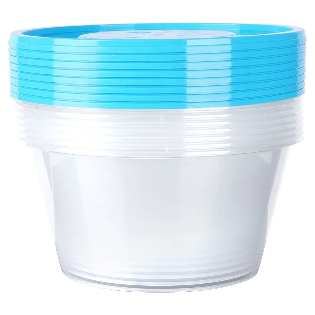 S touto univerzálnou sadou 10 okrúhlych dóz s objemom 650 ml budete mať poriadok v chladničke aj v špajzi. Priehľadné steny umožnia okamžitú kontrolu obsahu, modré veko zaistí spoľahlivé uzavretie a potraviny zostanú dlhšie čerstvé. Vďaka stohovateľnému tvaru nádoby šetria cenné miesto.