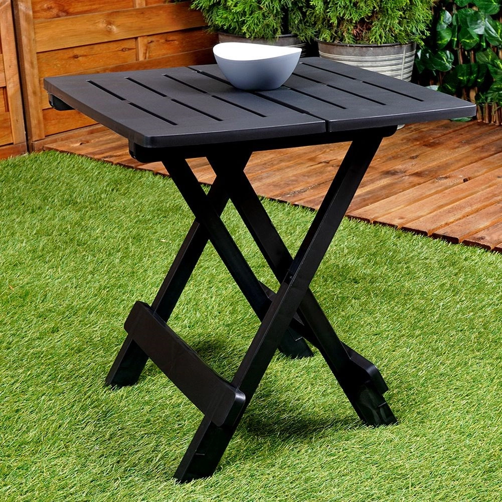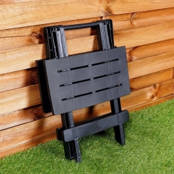 Kompaktný skladací záhradný stolík v elegantnej čiernej farbe je ideálny na záhradu, balkón aj kempovanie. Ponúka rozmery dosky 44 × 44 cm, výšku 50 cm a nosnosť až 12 kg. Je ľahký, odolný voči poveternostným vplyvom a vodoodolný. Vďaka rýchlemu skladaniu a praktickému madlu sa ľahko prenáša a zaberá minimum miesta.