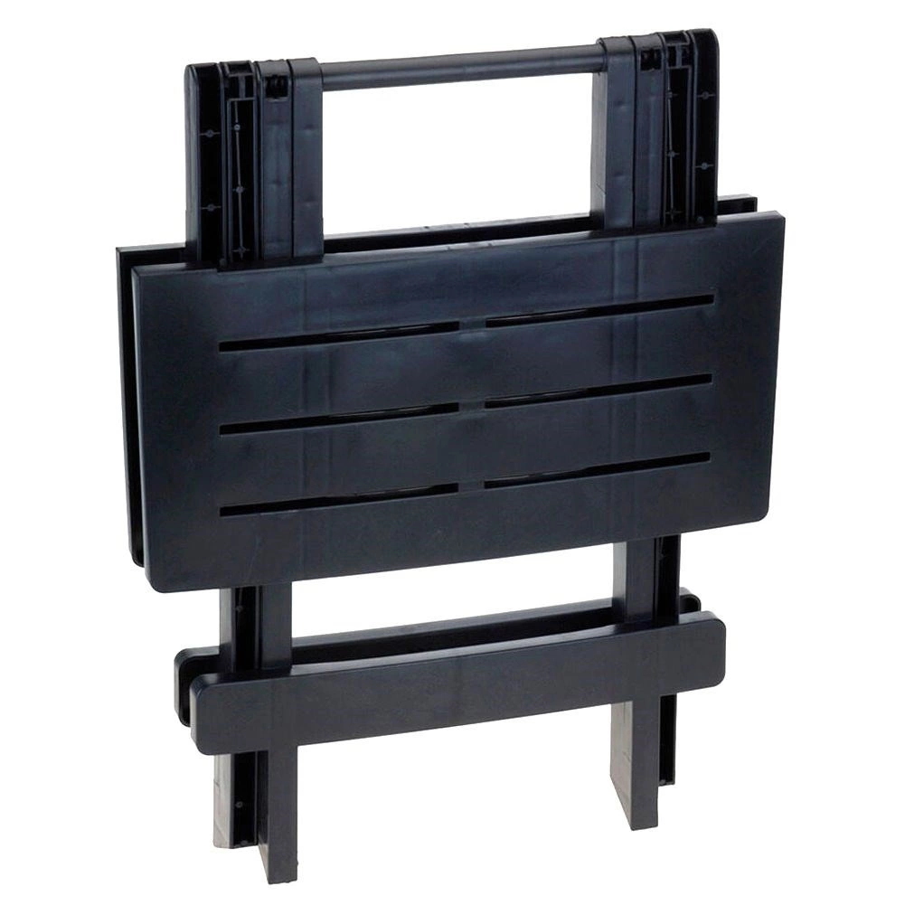 Hľadáte praktický a univerzálny stolík na vonkajšie použitie? Tento skladací záhradný stolík v čiernej farbe je skvelou voľbou na záhradu, balkón, terasu aj cestovanie. Stabilná konštrukcia so štyrmi nohami zaistí spoľahlivé používanie, či už pri servírovaní, odkladaní nápojov, alebo ako podstavec pre kvety a dekorácie.