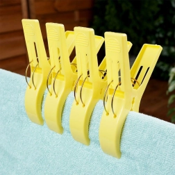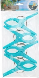 Praktická sada štyroch klipov na plážový uterák alebo deku zaistí, že vám ich vietor už nikdy neodfúkne. Každý klip v tvare kolíčka má rozmery 15 × 10 cm, je z kvalitného plastu a dodávame ho v rôznych farbách (odosielame náhodne). Na rýchle upevnenie uteráka k ležadlu či plážovej stoličke sú klipy mimoriadne funkčné, odolné a univerzálne – ideálne na pláž, kemp aj stanovanie.