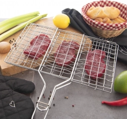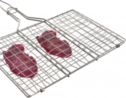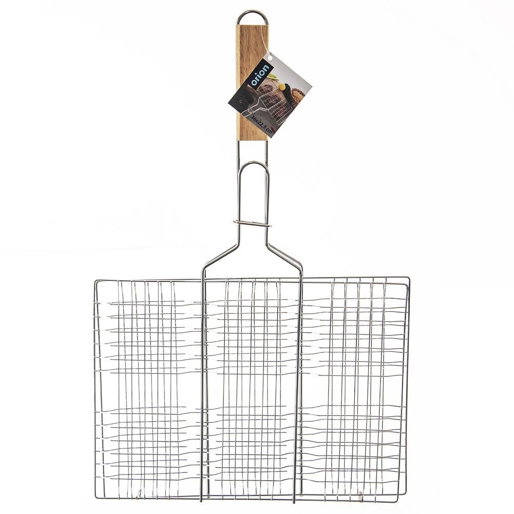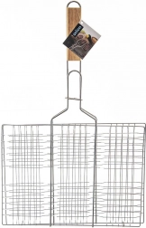 Praktický, obojstranný a uzamykateľný grilovací rošt z pochrómovaného kovu s dlhou drevenou rukoväťou na bezpečnú manipuláciu. Ideálny na burgre, ale aj na mäso, ryby a zeleninu. Vďaka konštrukcii zabezpečuje rovnomernú cirkuláciu tepla a jednoduché obracanie bez rozpadu potravín.