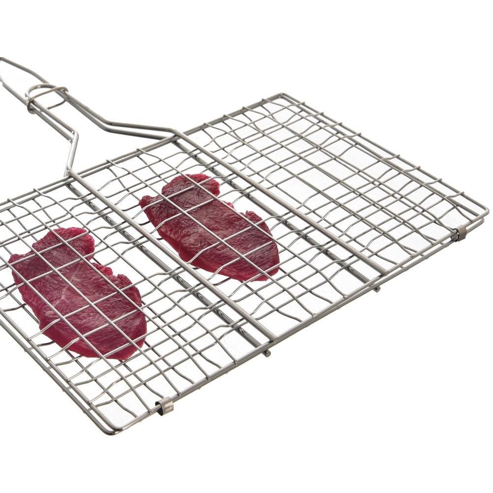 Vyrobený z kvalitného chrómovaného kovu pre odolnosť a jednoduchú údržbu. Vďaka univerzálnym rozmerom sa hodí na väčšinu grilov a je obzvlášť vhodný na prípravu burgrov, ale aj steakov, rybích filetov či krehkej zeleniny.