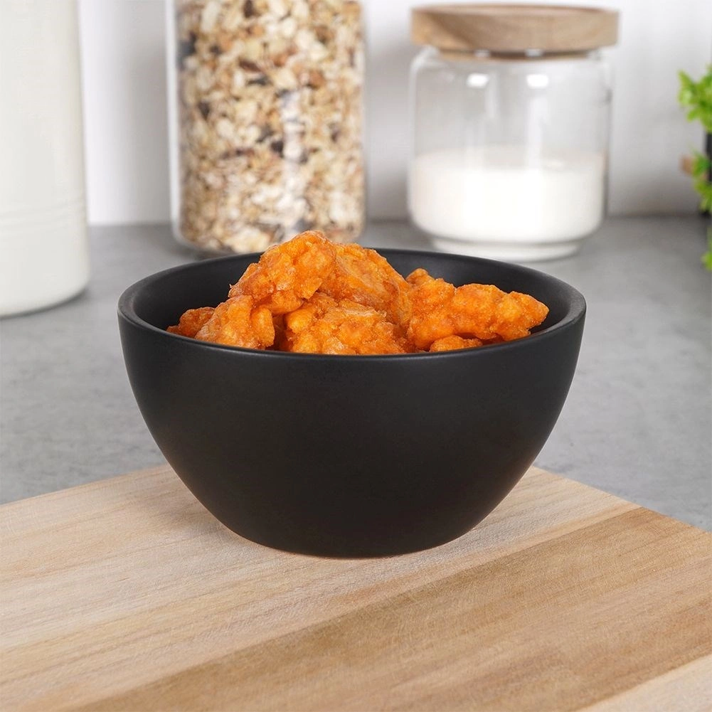 Praktická keramická miska s objemom 180 ml a priemerom 10 cm je ideálna na každodenné použitie. V matnej čiernej farbe sa skvele hodí na malé pochutiny, dezerty, dip y a omáčky. Vďaka kvalitnej keramike je odolná, možno ju umývať v umývačke riadu a používať v mikrovlnnej rúre. Moderný dizajn krásne doplní každý stôl.