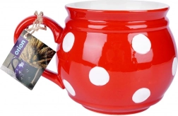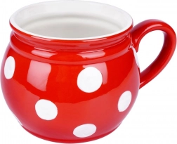 Užite si svoje obľúbené horúce aj studené nápoje vo veľkom štýle. Tento červený keramický hrnček s bielymi bodkami zaujme svojím klasickým dizajnom a praktickým tvarom, ktorý perfektne padne do ruky. Je skvelou voľbou na domáce používanie a hodí sa k akejkoľvek stolovej výbave.
