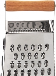 Objavte univerzálne kuchynské strúhadlo, ktoré uľahčí prípravu zeleniny, ovocia, syrov aj korenia. Telo z nehrdzavejúcej ocele zaručuje dlhú životnosť a ostré britvy, zatiaľ čo pohodlná rukoväť z akáciového dreva a protišmyková gumová základňa zaistia istý úchop a stabilitu pri práci.
