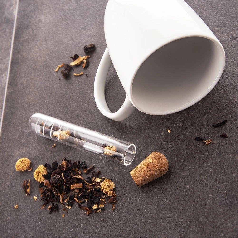 Praktické sklenené sitko na čaj a bylinky v tvare fiolky s dĺžkou 13 cm zabezpečí čistý nálev bez lístkov v šálke. Vďaka korkovej zátke sa ľahko vyberá a je pohodlné na manipuláciu. Vyrobené z kvalitného číreho skla, ktoré je odolné, hygienické a skvelo zvýrazní farbu nápoja. Ideálne pre milovníkov sypaných čajov a bylinných zmesí.