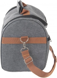 Pre maximálne pohodlie má taška odnímateľný a nastaviteľný ramenný popruh, pevné ucho na rýchle prenášanie a predné uzatvárateľné vrecko na drobnosti. Obojcestný zips umožňuje rýchly prístup k obsahu. Štýlová kombinácia sivej farby s hnedými pásikmi sa hodí do mesta aj do prírody.