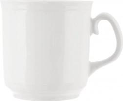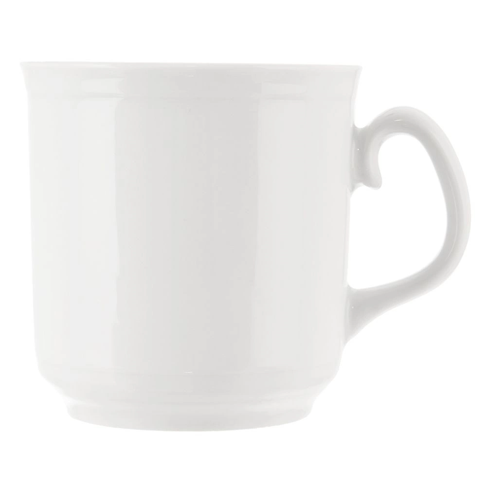 Univerzálny hrnček z kvalitného porcelánu v čisto bielej farbe sa hodí do každej kuchyne. Je ľahký, odolný a vďaka pohodlnému uchu sa príjemne drží v ruke. Minimalistický, klasický dizajn ľahko zladíte s ostatnými kúskami riadu a prestieraním.