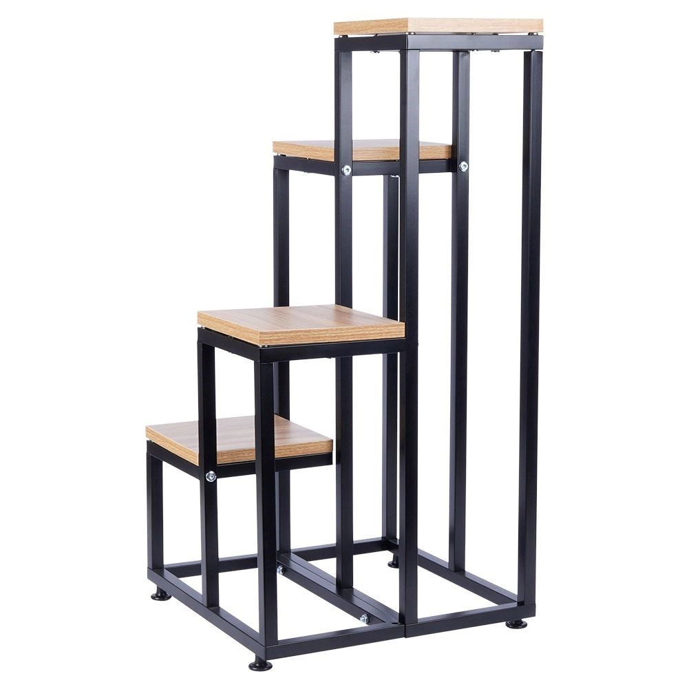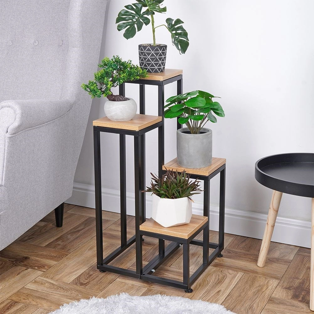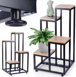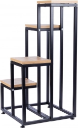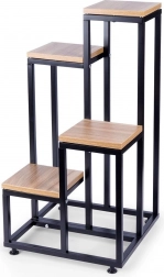 Vneste do interiéru moderný loftový akcent s týmto štvorposchodovým kvetinovým stojanom. Stabilná kovová konštrukcia v čiernej farbe a police z kvalitnej MDF s prírodnou textúrou dreva vytvárajú nadčasovú kombináciu, ktorá sa hodí do každého priestoru. Stojan je skvelý pre živé aj umelé rastliny a zároveň ako podstavec pre dekorácie.