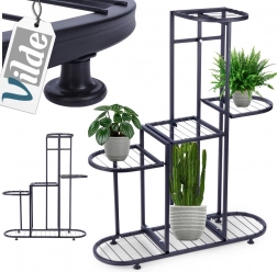 Štýlový kovový kvetinový stojan s piatimi úrovňami ponúka praktické a dekoratívne riešenie pre vaše rastliny a doplnky. Vďaka rozmerom 69,5 × 23,5 × 84,5 cm a stabilnej konštrukcii unesie každá polica až 3 kg. Matná čierna farba a industriálny loft dizajn z neho robia výrazný prvok do každého interiéru. Ideálny do bytu, kancelárie aj na zastrešený balkón.
