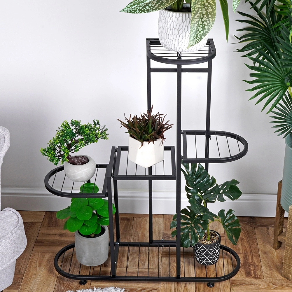 Objavte elegantné riešenie pre vaše kvety aj dekorácie. Tento 5-úrovňový kovový kvetinový stojan v matnej čiernej farbe skvele vynikne v moderných interiéroch a dodá im osobitý charakter. Vhodný pre izbové rastliny, sukulenty, popínavky aj štýlové doplnky, ako sú rámiky, suveníry či vázy s rezanými kvetmi.