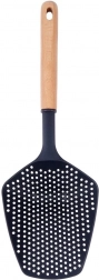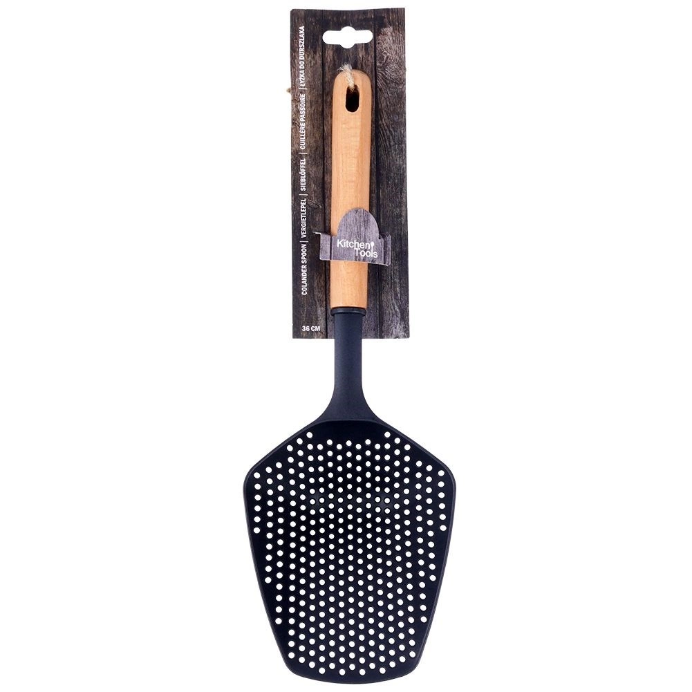 Táto kvalitná šumovka/cedníková lyžica je ideálna na každodenné varenie. Vďaka nylonovej hlavici je bezpečná pre teflónové, žulové aj keramické povrchy a nepoškriabe ani sklenený riad. Ergonomicky tvarovaná drevená rukoväť zabezpečuje pohodlný a istý úchop, zatiaľ čo otvor na konci umožní praktické zavesenie na kuchynský reling.
