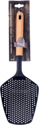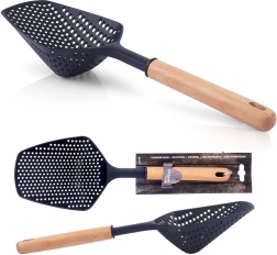 Praktická kuchynská naberačka s cedníkovou hlavicou s dĺžkou 36 cm na jednoduché scedenie a naberanie. Kombinácia odolného nylonu a prírodnej drevenej rukoväti je šetrná k riadu s nepriľnavými povrchmi. Univerzálne použitie, ergonomická rukoväť, odolnosť voči vysokým teplotám a možnosť zavesenia robia z tejto šumovky spoľahlivého pomocníka do každej kuchyne.