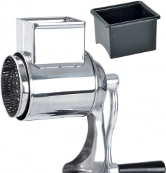 Objavte spoľahlivú pomocníčku do kuchyne: ručná nerezová strúhačka s upínaním. Kombinuje kvalitnú nerezovú oceľ a odolné plastové prvky v čiernej farbe pre dlhú životnosť a pohodlné každodenné používanie. Vďaka tradičnému mechanickému riešeniu a pohodlnej kľuke pripravíte čerstvú strúhanku alebo jemne nastrúhané orechy, čokoládu či syr bez námahy.