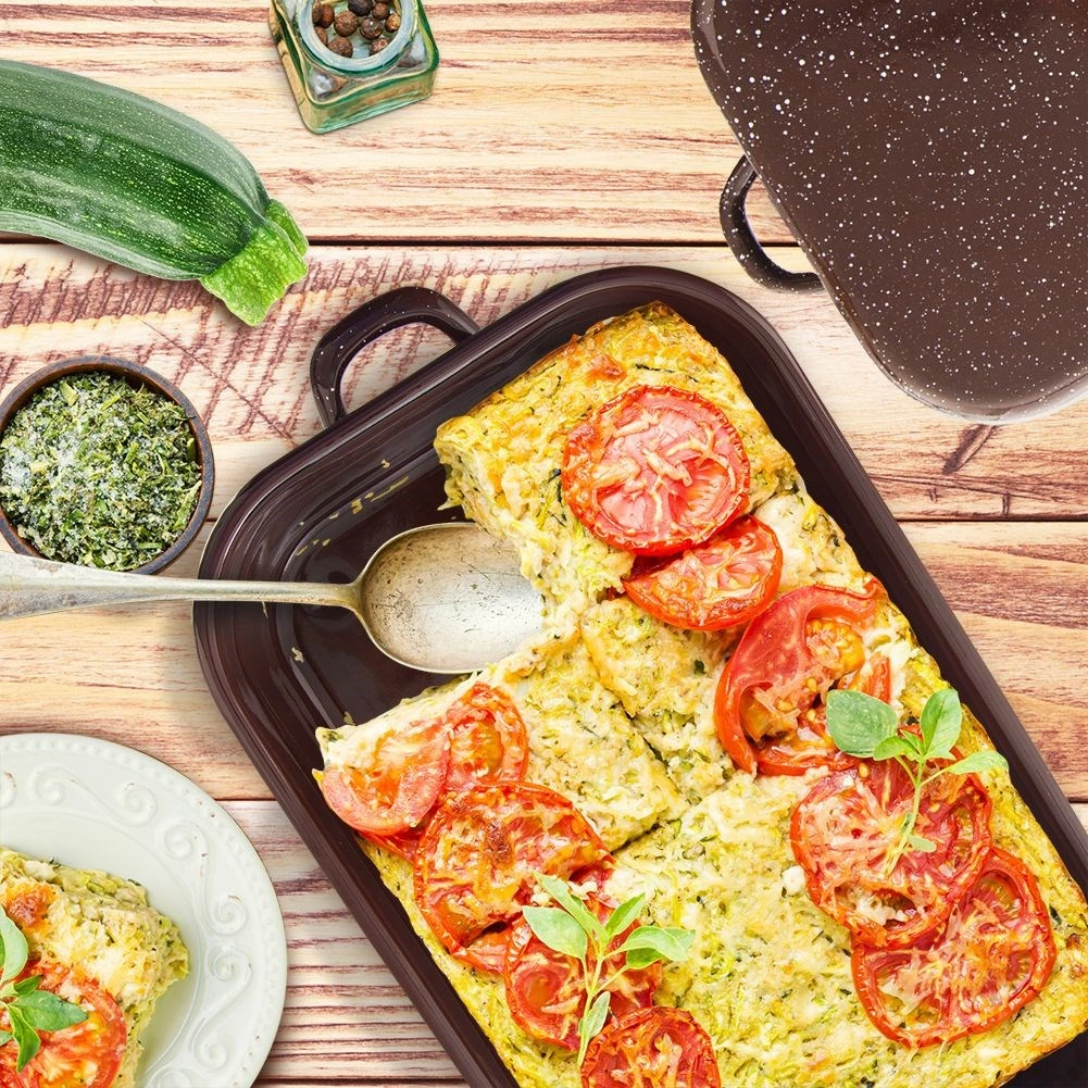 Tento robustný smaltovaný pekáč v elegantnej hnedej farbe ponúka univerzálne použitie v každej kuchyni. Vďaka veku s úchytmi získate po jeho zložení dve samostatné zapekacie a servírovacie nádoby. Smaltovaný povrch je zdravotne nezávadný a vhodný aj pre alergikov, zároveň sa ľahko udržiava a pokrmy sa menej prichytávajú.