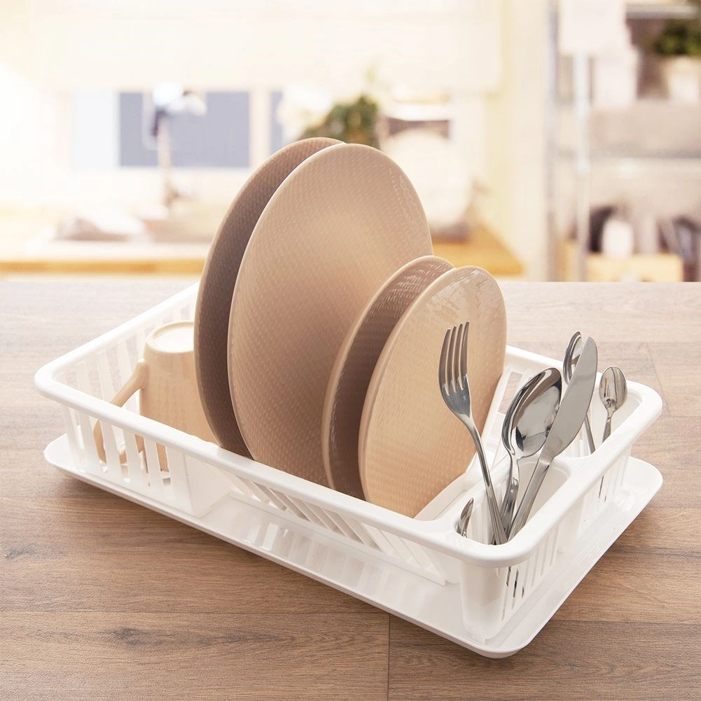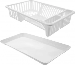 Praktický odkvapkávač na riad s rozmermi 45,5 × 28 × 10 cm uľahčí sušenie umytých tanierov, hrnčekov a príborov a zároveň ochráni kuchynskú pracovnú dosku. Je vyrobený z kvalitného plastu v bielej farbe, má vyberateľný odkvapkávací tácek a možno ho umývať v umývačke. Ponúka miesto až pre 12 tanierov, priestor na hrnčeky a dve priehradky na príbory. Jednoduché čistenie, univerzálny dizajn a spoľahlivá kvalita pre každú kuchyňu.