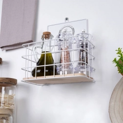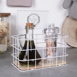 Otvorený drôtený košík udrží koreniny a drobnosti vždy na očiach a na dosah, bez toho, aby zbytočne zaberal veľa miesta na linke.