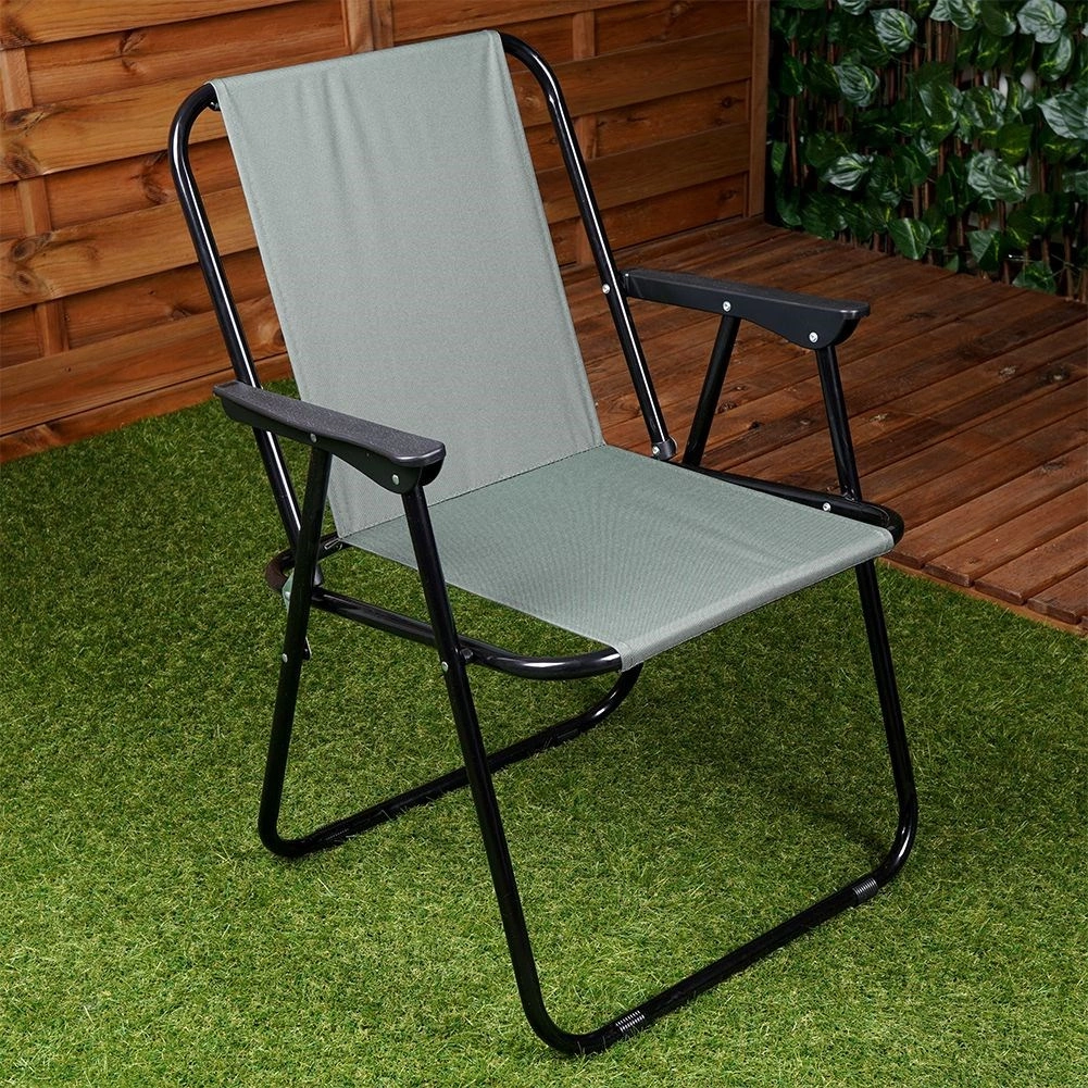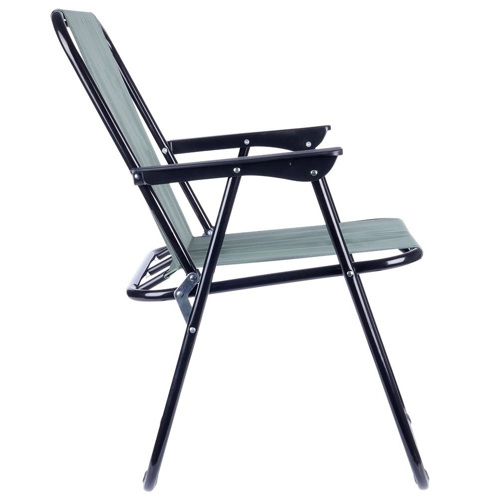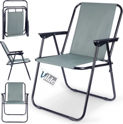 Praktická a ľahká skladacia turistická stolička s rozmermi 54 × 44,5 × 72,5 cm je ideálna na pláž, do záhrady, na kempovanie aj rybárčenie. Má pevnú kovovú konštrukciu, odolný polstrovaný polyesterový poťah v sivej farbe a pohodlné podrúčky. Ľahko sa rozloží aj zloží, je stabilná a unesie až 110 kg.