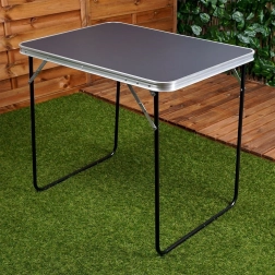 Praktický skladací stôl na kempovanie, záhradu aj balkón s rozmermi 80 × 60 × 70 cm a nosnosťou až 30 kg. Odolná MDF doska v grafitovej farbe so špeciálnou ochrannou vrstvou, pevný kovový rám a hliníkový okraj zaistia stabilitu. Po zložení je kompaktný, má integrované madlo a je vodoodolný – ideálny na kemping, pikniky aj domáce využitie.