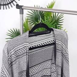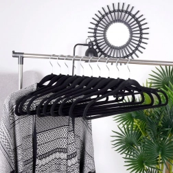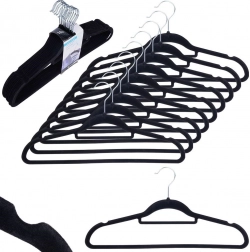Vešiaky majú zárezy na ramenách a spodnú lištu, takže bez problémov zavesíte tričká, saká, šaty so špagetovými ramienkami, sukne, nohavice aj šály. Zamat je šetrný k textíliám a pomáha predchádzať skĺzavaniu, pokrčeniu a otlakom.
