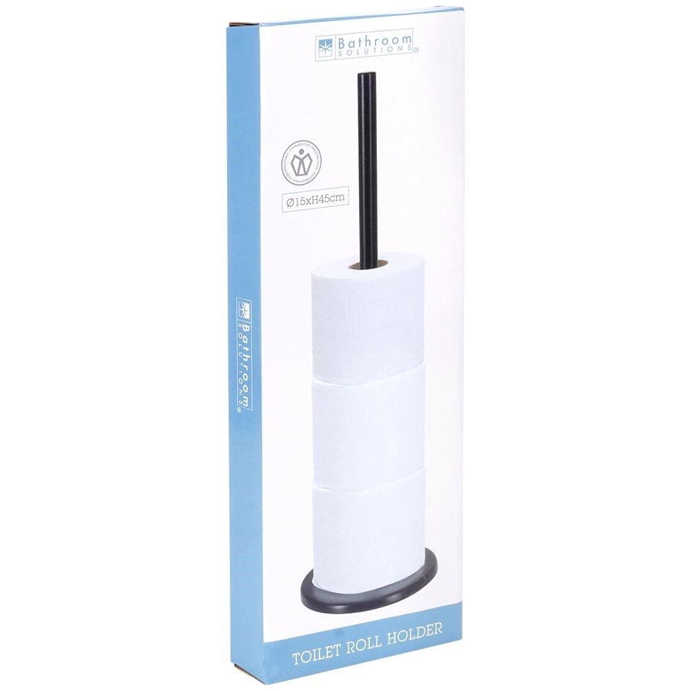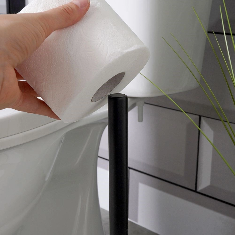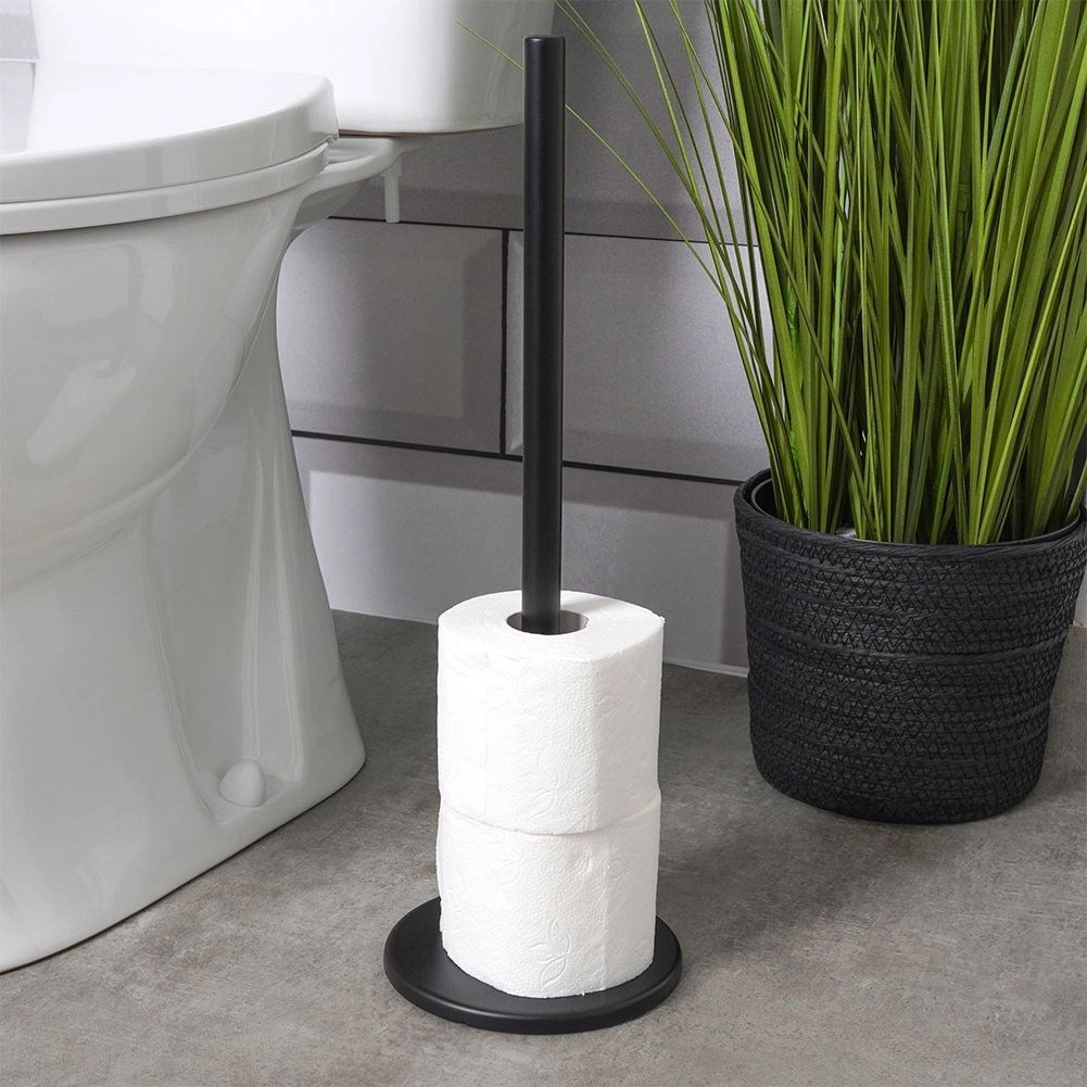 Voľne stojaci držiak na toaletný papier s výškou 47 cm a priemerom základne 15 cm ponúka praktické a elegantné riešenie pre každú toaletu. Minimalistický dizajn v matnej čiernej skvele ladí s väčšinou kúpeľňových štýlov a udržiava náhradné rolky vždy poruke.