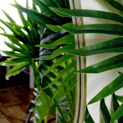 - Dizajnový akcent – nepravidelný tvar a šampansky zlatý rám podčiarknu charakter miestnosti.
