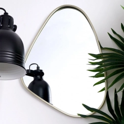 Oživte svoj interiér zrkadlom, ktoré spája funkčnosť a modernú eleganciu. Nepravidelný tvar vynikne v klasických aj súčasných priestoroch, zatiaľ čo šampansky zlatá farba rámu pridá miestnosti sofistikovaný nádych. Zrkadlo je ideálne ako praktický pomocník na každodenné použitie aj ako dekoratívny prvok, ktorý opticky zväčší a presvetlí priestor.