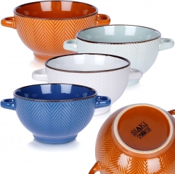 Sada štyroch misiek s praktickými uškami uľahčí servírovanie horúcich polievok, dusených jedál aj desiat. Každá miska má objem 620 ml a rozmery 18 × 14 × 8 cm, takže ponúka dostatok priestoru na sýte porcie. Kvalitná keramika s lesklou glazúrou je odolná a ľahko sa udržiava.