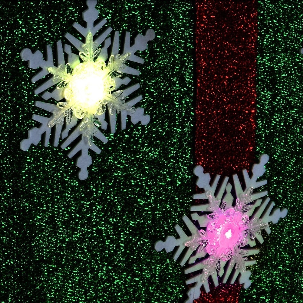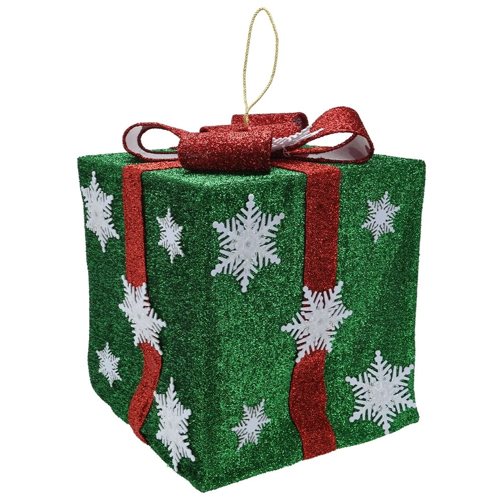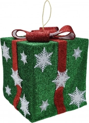 Vytvorte si doma aj na záhrade sviatočnú náladu s týmto výrazným svietiacim darčekom. Trblietavý zelený povrch, kontrastná červená stuha a biele snehové vločky priťahujú pozornosť cez deň a 14 farebne meniacích sa LED diód vyčarí večer príjemné svetlo. Dekorácia je skladacia, takže ju po sezóne ľahko uložíte.