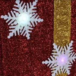 Červený glitter povrch, biela vločková výzdoba a zlatá mašľa zabezpečujú luxusný vzhľad, ktorý zaujme na prvý pohľad.