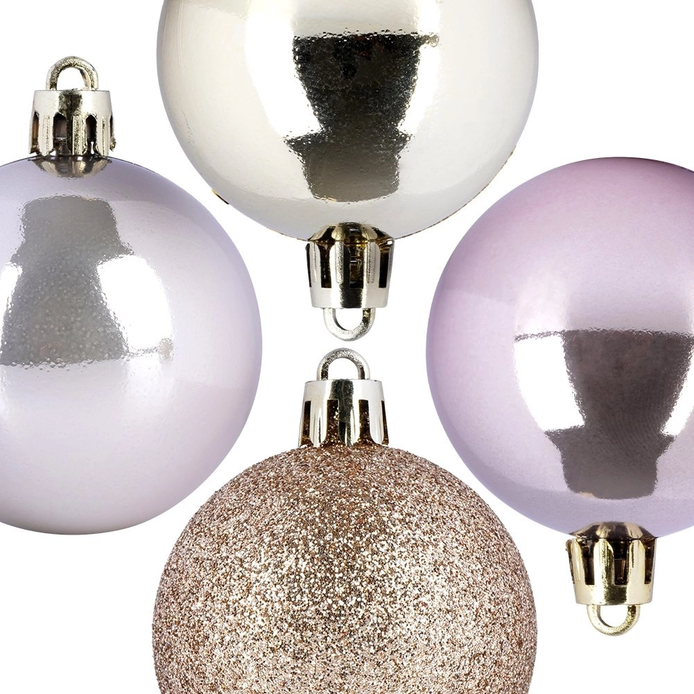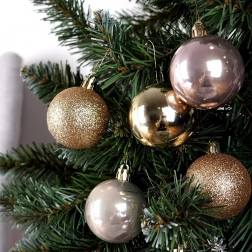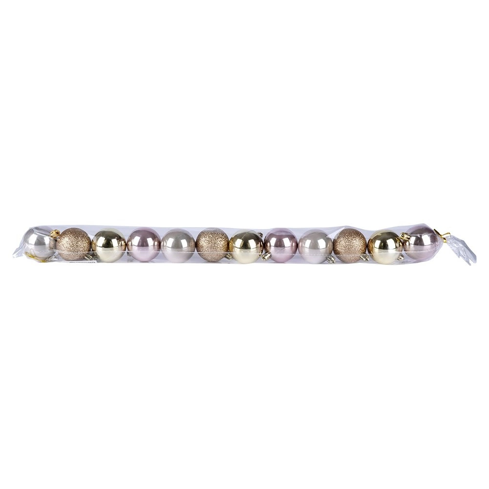 Elegantná sada 12 kusov vianočných gulí v odtieňoch ružovej a zlatej dodá vášmu zdobeniu jedinečný lesk. Gule s priemerom 5 cm sú z kvalitného plastu, takže sú nerozbitné, bezpečné pre deti a domácich miláčikov a zároveň pôsobia ako sklenené ozdoby. Kombinácia lesklých a trblietavých povrchov vytvára harmonický, sviatočný efekt.