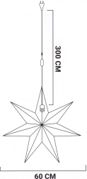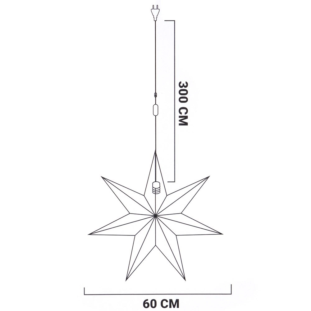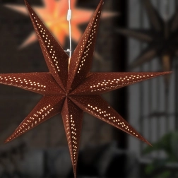 Elegantná závesná hviezda s priemerom 60 cm z pevného papiera s hebkým zamatovým povrchom v hnedej farbe a zlatými trblietavými detailmi. Po rozsvietení vytvorí jemné, atmosférické svetlo a dodá interiéru sviatočné aj celoročné čaro. Je napájaná zo siete, má vypínač, 3 m kábel a je určená pre žiarovku E14 (max. 25 W, nie je súčasťou). Ideálna do okna, na stenu či kamkoľvek, kde chcete podčiarknuť útulnú atmosféru.