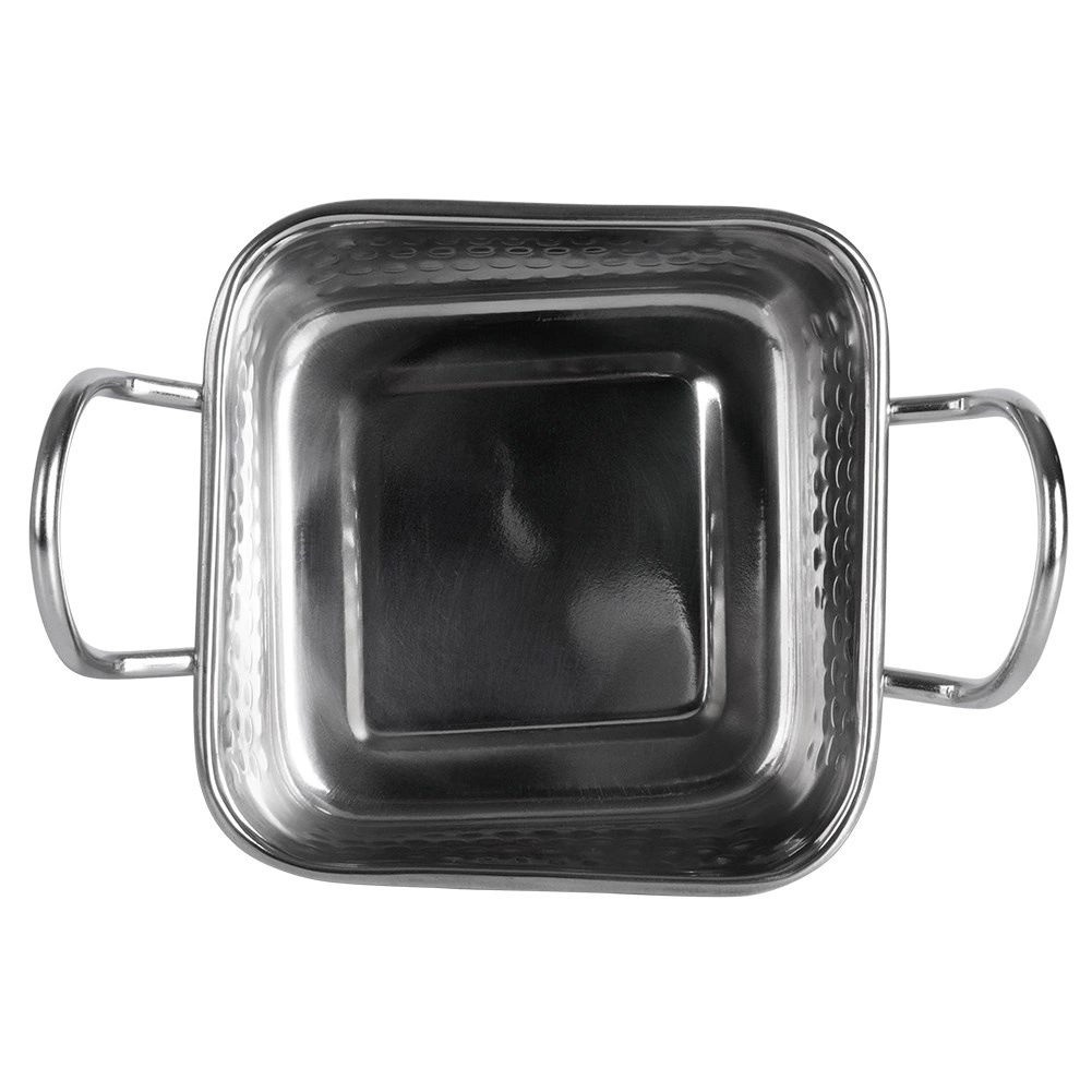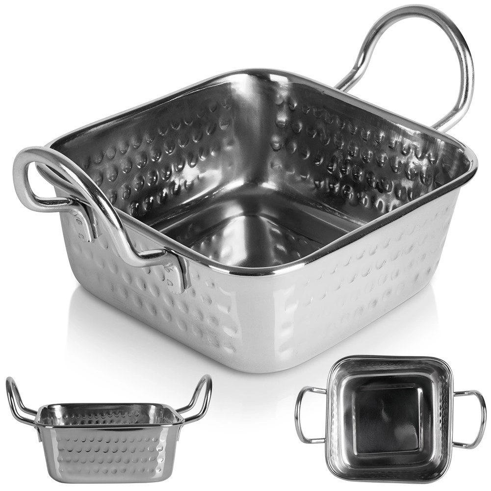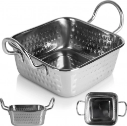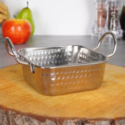 Toto štvorcové nerezové servírovacie nádobie s módnym kladivkovým povrchom dodá vášmu stolu profesionálny vzhľad. Skvelé na podávanie hranoliek, pečených zemiakov, zeleniny, mäsových či vegetariánskych pochúťok aj drobných príloh.