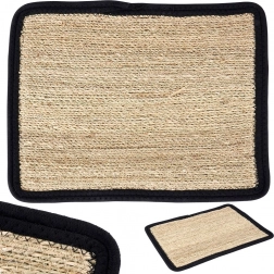 Štýlová stolová podložka z morskej trávy s čiernym bavlneným lemom v rozmere 46 × 35 cm ochráni dosku stola a dodá jej prírodný šmrnc. Je odolná, ľahko sa čistí vlhkou handričkou a skvele sa hodí do boho interiérov, kuchyne aj jedálne. Poslúži pod taniere, hrnčeky aj vázy a zároveň vytvorí dekoratívny a nešmykľavý povrch.