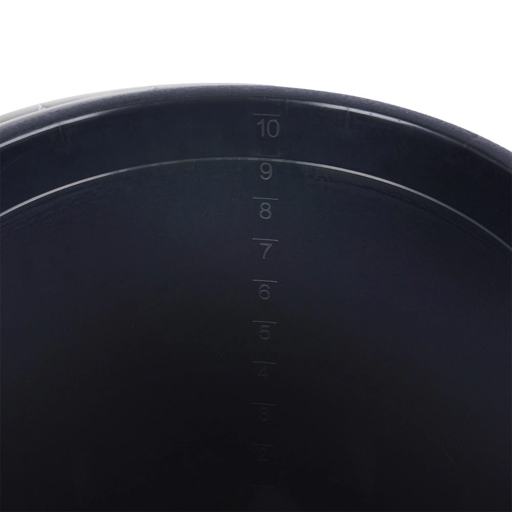 Univerzálne čierne vedro s ergonomickým sivým uchom zvládne každodennú prácu v domácnosti, na záhrade aj v garáži. Široký okraj umožňuje jednoduché plnenie a vylievanie, vnútorná stupnica po 1 litri zaistí presné odmeriavanie tekutín. Odolná plastová konštrukcia je zároveň ľahká pre pohodlné prenášanie.