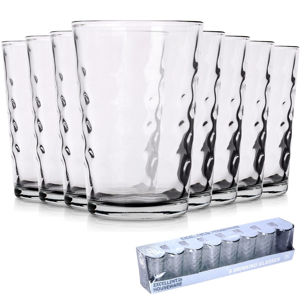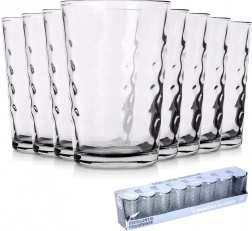 Elegantná sada ôsmich pohárov s objemom 200 ml s dekoratívnym reliéfom pre lepší úchop. Vhodné na vodu, limonádu, džúsy aj koktaily. Vyrobené z kvalitného hrubého skla, univerzálne využitie doma aj v gastronómii a jednoduché čistenie v umývačke.