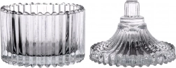 Elegantná sklenená cukornička s objemom 80 ml s vekom a praktickým úchytom je ideálna na servírovanie aj skladovanie cukru. Vyrobená z kvalitného, pevného skla s efektným rebrovaním, ktoré pripomína krištáľ. Vďaka priehľadnému prevedeniu sa hodí k akémukoľvek servisu a skvele doplní vašu kuchyňu aj stôl. Je ľahko udržiavateľná, vhodná do umývačky a poskytuje univerzálne využitie nielen na cukor, ale aj drobnosti v domácnosti. Elegantný dizajn, odolné sklo a praktické veko na každý deň.