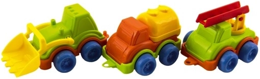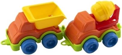 Sklápačka, miešačka a ďalšie stroje vyzývajú k tvorivej hre. Deti môžu prevážať, nakladať a stavať podľa svojej fantázie.