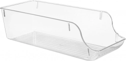 Praktický priehľadný organizér do chladničky s rozmermi 35 × 14 × 10 cm udrží vaše potraviny prehľadne usporiadané. Vďaka otvorenej prednej strane s výrezom je vyberanie jednoduché a rýchle, vrúbkované dno zvyšuje stabilitu. Vyrobený z kvalitného, zdravotne nezávadného plastu, ideálny na ovocie, zeleninu aj konzervy. Úspora miesta, okamžitý prehľad o obsahu a jednoduchá údržba pre každú kuchyňu.