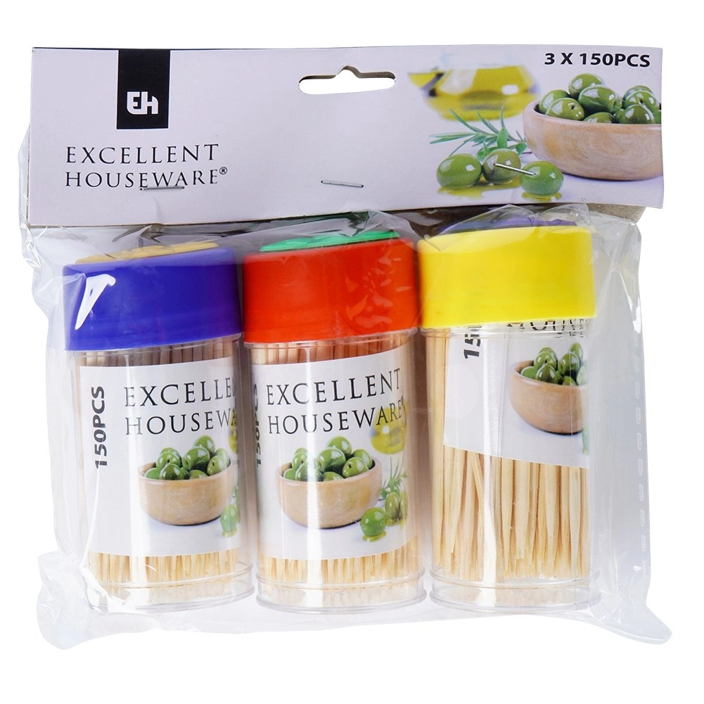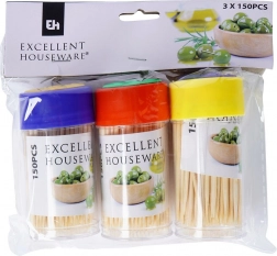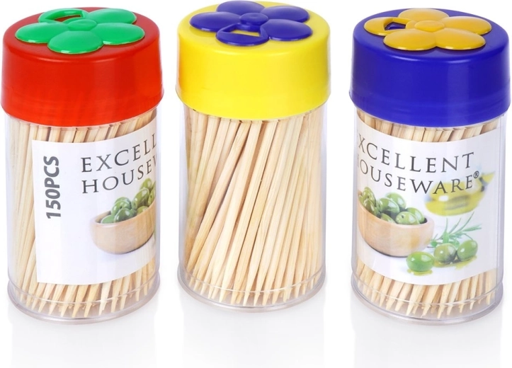 Sada obsahuje 3 transparentné zásobníky, každý so 150 kusmi kvalitných bambusových špáradiel. Prírodný materiál je pevný, hladký a bezpečný na styk s potravinami. Vďaka dávkovaciemu viečku je používanie rýchle, čisté a prehľadné.