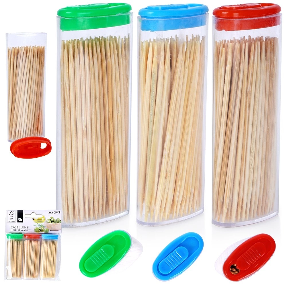Priehľadné plastové dózy s flip viečkom umožnia vybrať vždy len jedno špáradlo a udržať zvyšok čistý a chránený pred nečistotami.