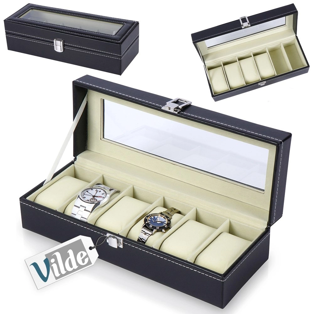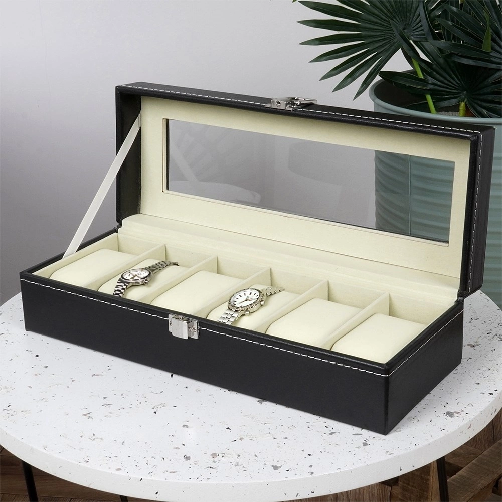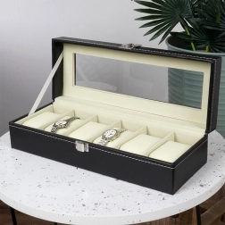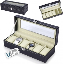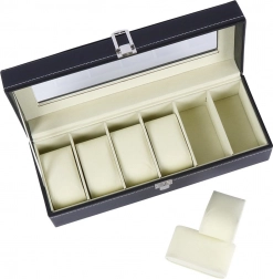 Vďaka šiestim oddeleným priehradkám má každý kus svoje miesto. Kovové zapínanie zaisťuje spoľahlivé uzatvorenie, takže sú hodinky chránené pred prachom, náhodnými nárazmi aj drobnými škrabancami. Organizér sa skvele hodí do obývačky, spálne či šatníka a je tiež výborným darčekom pre ženy aj mužov.