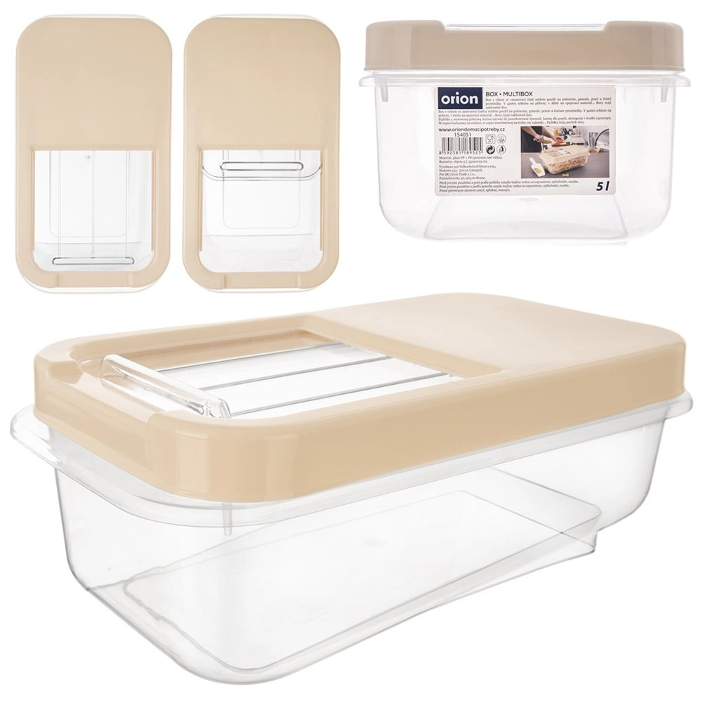 Udržujte poriadok v kuchyni, špajzi aj kúpeľni s priestranným boxom s objemom 5 l. Priehľadné telo umožní rýchlu kontrolu stavu zásob a posuvné veko zaistí pohodlné dávkovanie bez nutnosti otvárať celý box. Šikmé dno uľahčuje vysypávanie a prístup k posledným zvyškom.