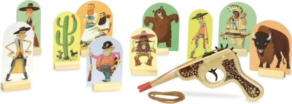 Postavte terče, natiahnite gumičku a vyzvite rodinu alebo kamarátov na prestrelku v obývačke. Kvalitné drevené prevedenie zaisťuje odolnosť a dlhú životnosť hračky, zatiaľ čo atraktívny westernový dizajn nadchne malých pištolníkov.