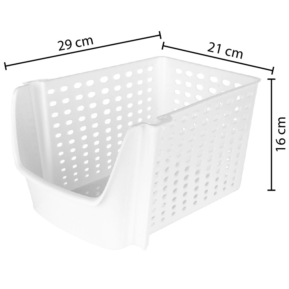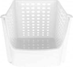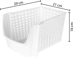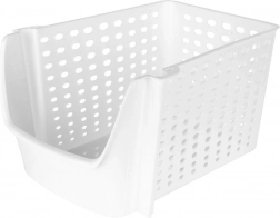 Univerzálny biely kôš je skvelý na prehľadné uloženie ovocia, zeleniny aj ďalších potravín. Perforácie po stranách a na zadnej strane zabezpečujú ventiláciu a lepšiu viditeľnosť obsahu, čím pomáhajú udržať suroviny dlhšie čerstvé. Predný výrez umožňuje rýchly a pohodlný prístup k uloženým veciam.