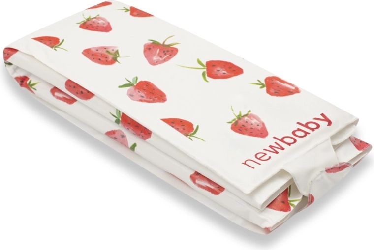 Podložka je vyrobená z kvalitnej certifikovanej PVC fólie bez škodlivých látok, ktorá je citlivá k detskej pokožke. Je veľmi ľahká, skladná a ľahko sa udržiava – stačí zotrieť vlhkou handričkou. Jemné pastelové farby a motív jahôdok potešia rodičov aj deti.