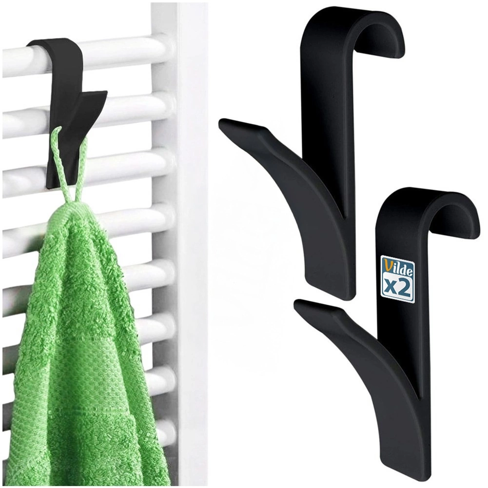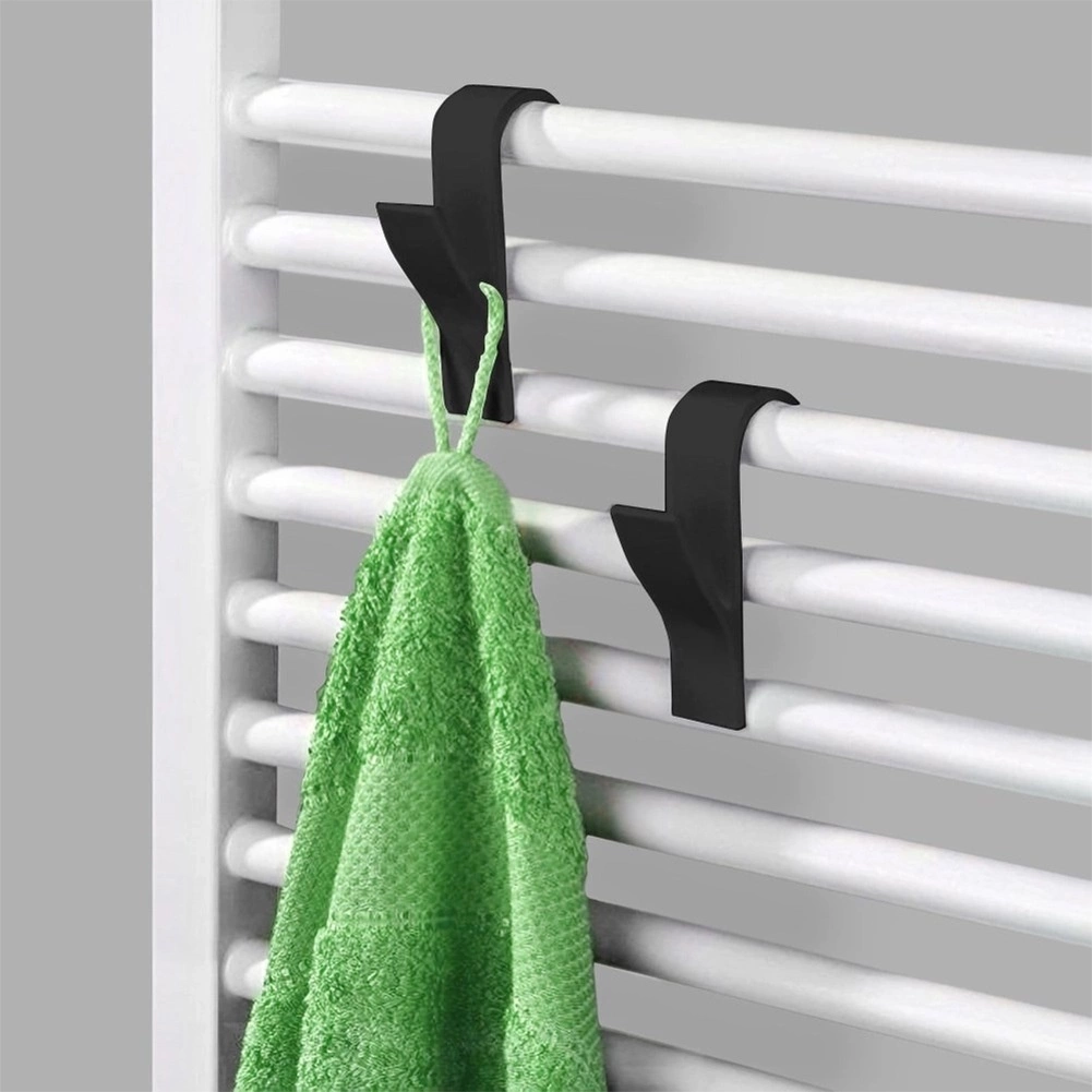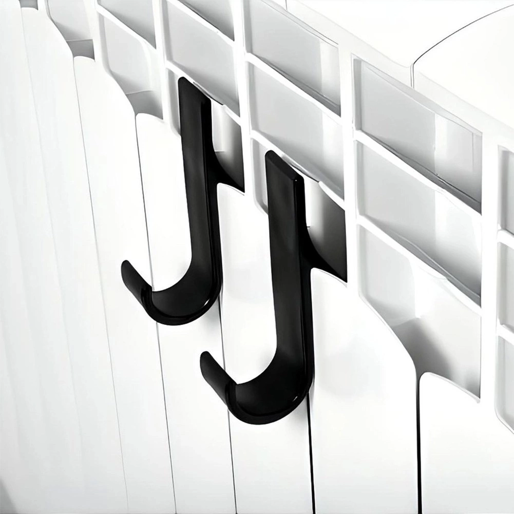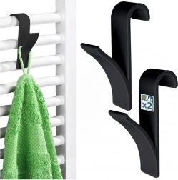 Praktická sada dvoch háčikov na radiátor pre rýchle sušenie a úsporu miesta. Ľahko ich zavesíte bez vŕtania, sú z odolného plastu v čiernej farbe a pasujú na väčšinu rebrových aj doskových radiátorov, dverí či poličiek. Ideálne na uteráky, župany, pyžamá aj kuchynské utierky – elegantný minimalistický dizajn sa hodí do každej kúpeľne, kuchyne aj predsiene.