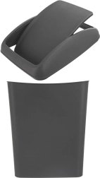 Kompaktný odpadkový kôš s objemom 20 l s výklopným vekom pre pohodlné a hygienické vyhadzovanie odpadu. Vďaka štíhlemu tvaru sa zmestí do menších priestorov a skriniek, je ľahký, odolný a ľahko sa čistí. Matná tmavosivá farba a klasický dizajn sa hodia do kúpeľne, kuchyne aj kancelárie.