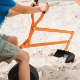 Konštrukcia umožňuje plnú rotáciu, takže dieťa môže kopať, naberať aj vysypávať bez posúvania hračky.